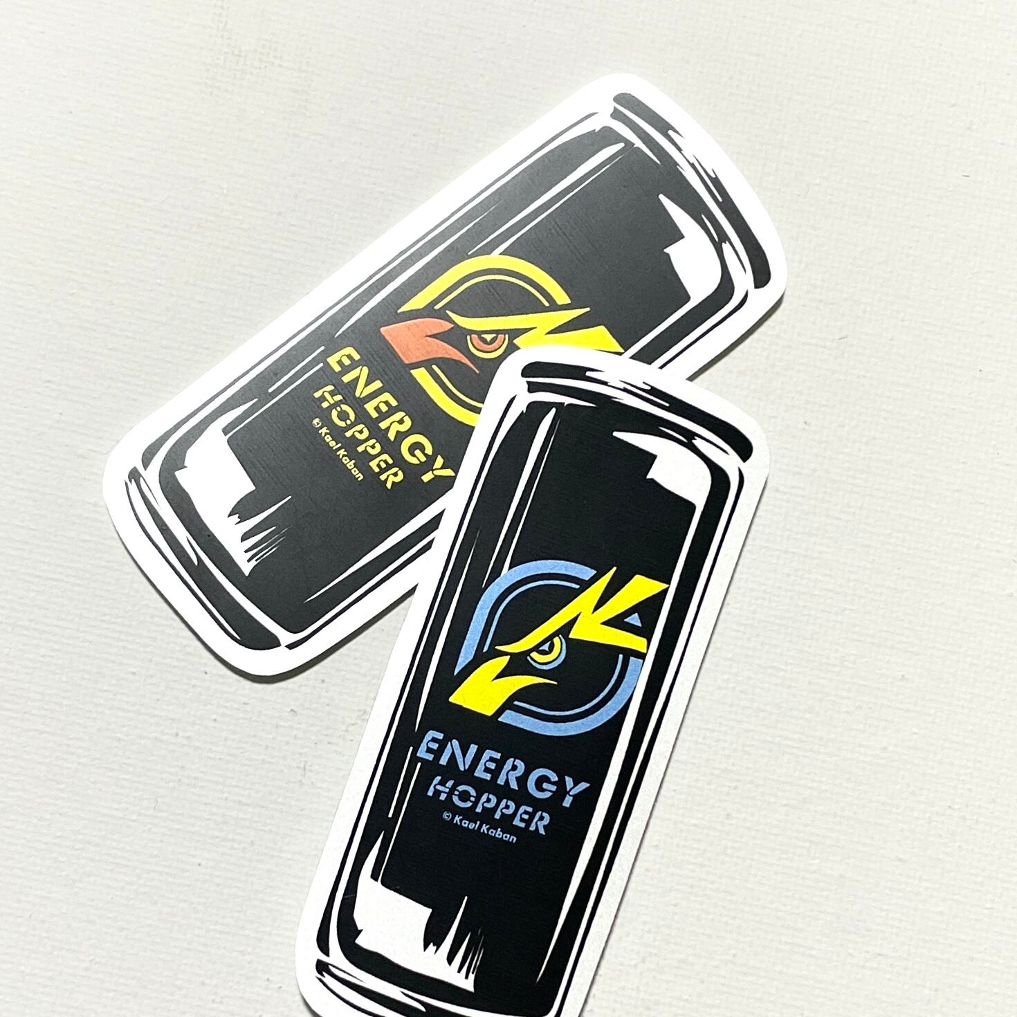 こちらはイワトビペンギン印の架空のエナジードリンクエナジーホッパーロゴ入りの缶のステッカーとなります。