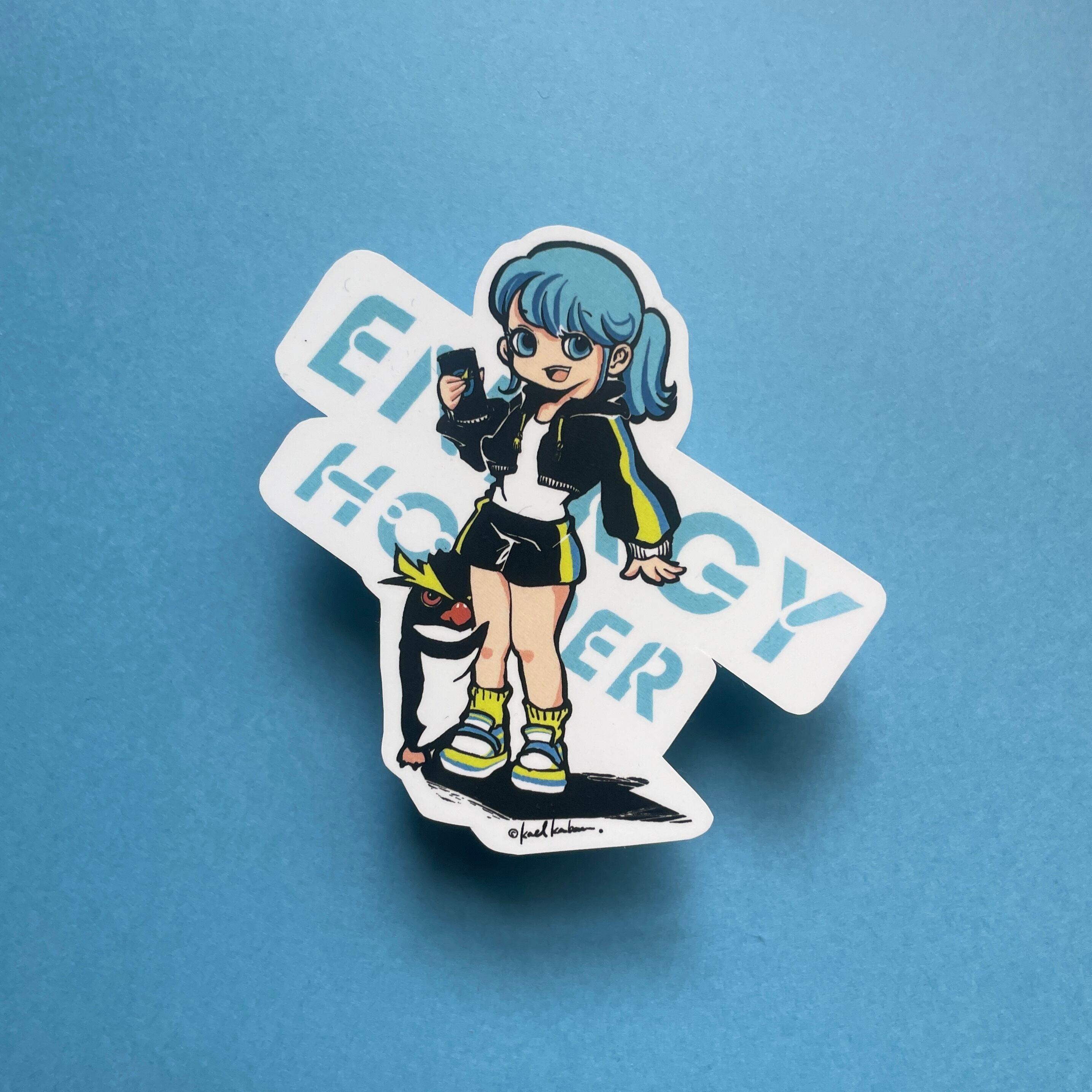 こちらはイワトビペンギン印の架空のエナジードリンクエナジーホッパーをイメージしたステッカーです。