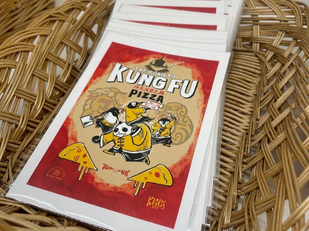 【TUNE TUK PIZZA 】ジャイアントパンダとジェンツーペンギンのピザ屋さん カンフーポストカード